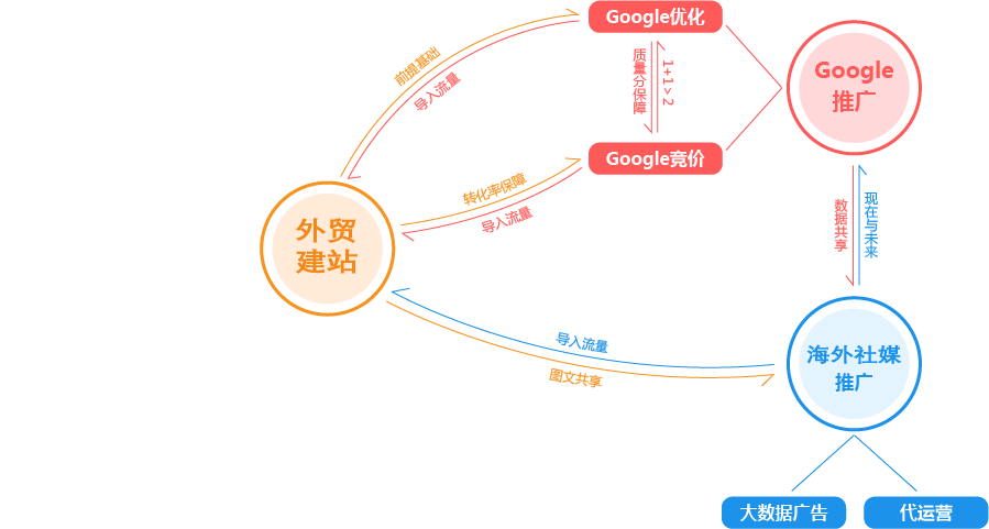 清远外贸推广公司为您提供全面的“整合”方案,为您的企业提供全生命周期的精细化服务和咨询。为此,我们搭建了从广告投放到SEO优化,从内容运营到网站开发,从品牌策划到电商运营的近100人的团队,组成了一家集全球渠道资源、人才资源、技术资源为一体的数字营销机构,为您一站式解决出海难题,实现品牌全球推广!